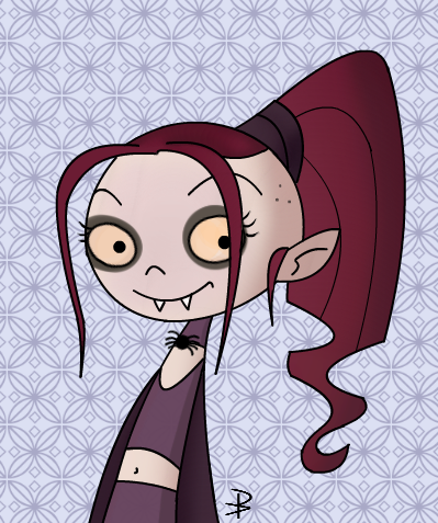 Sam Manson looks sexy and even less scary than any other vampire, especially when she prefers juices from fruits and vegetables to blood and loves to spend nights out, sleeps in daytime, and take Danny, Tucker, and her friends for a bite (at Nasty Burger, that is).Art: