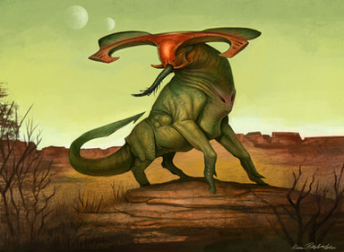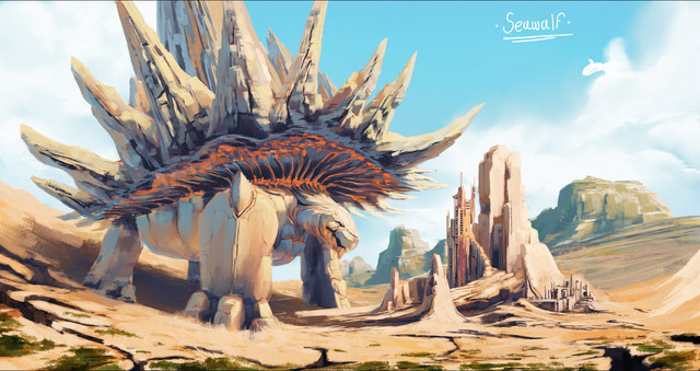 Octoturtle is a species of tortoise that will walk the vast African rockscapes hundreds of millions of years from now. It gets its name from how it looks when grazing; 6 legs spread out, tail down for balance and head munching on sparse tree tops. From a distance, it almost looks like an eight legged animal.