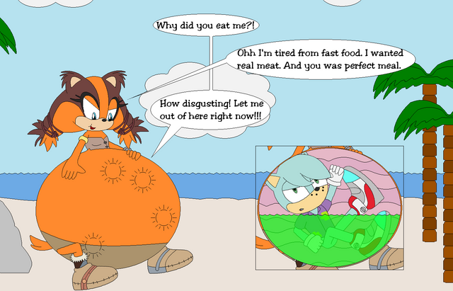 A request from who wanted to see Rouge with a big vore belly. Of course she didn't have a big vore belly like the requester asked for so I added it myselfRouge and Knuckles belong to SEGA and Sonic Team