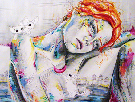 watercolours, ink, markers.