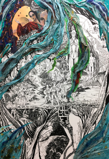 I like all of the intricate details in this piece. It has an overall surreal feeling to it.