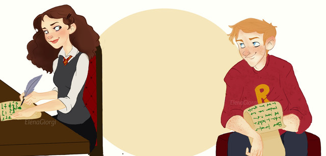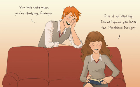 Aww this is so cute, the BOOK version of Ron and Hermione. ^^ Totally understand what you mean by Emma Watson ruining the character.