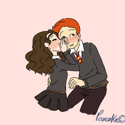 Ron and Hermione, sharing a quick kiss before class starts.Request for ~AuroraWinter .