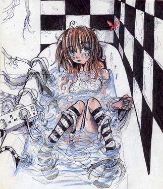 Wow!Your b/w works are always so beautiful *-* and the red butterfly gives them a nice touch <3