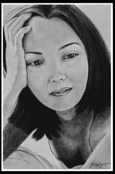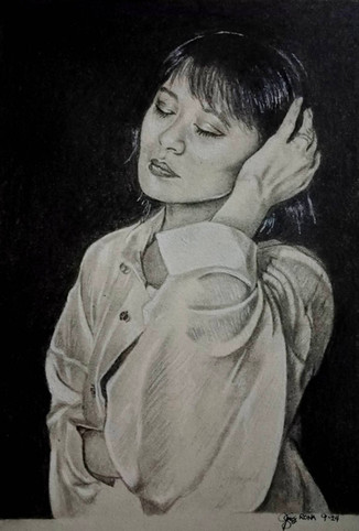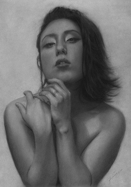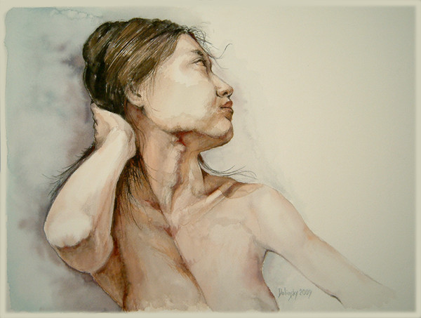I like the soothing blue colour, and very delicate work on eyes, hair, hands and skin textures. Her face really gives the feeling she is in contemplation.