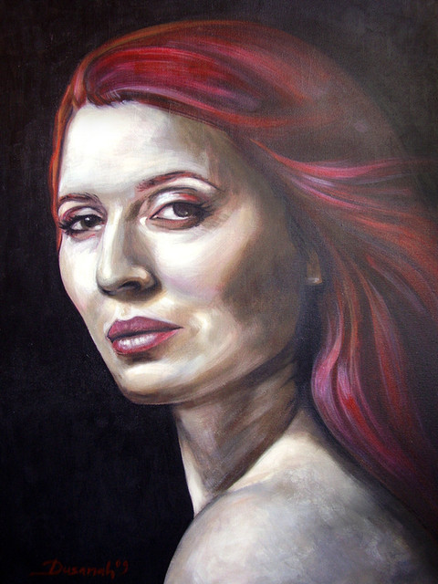 I'm trying to reach here for comments that would possibly help. Your work is intended to be somewhat impressionistic, as the hair readily shows. Given that, I'd have to say this is a pretty good painting. It's unfortunate that the top of her head is cut off, but I'm sure you have/had your reasons for constructing the picture that way.