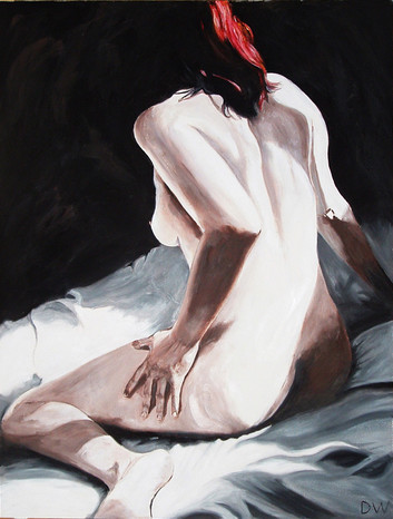 Oil on canvas, 120 cm X 90cmSally is tall elegant and one of those woman that I often get men I know whispering to me "hey, do you know her? she's the sexiest thing I've ever seen!" or something of that type. She's also happily married to the ever cool Shayne, the 2 of whom became pregant with their 3rd child not long after this photo was taken.
