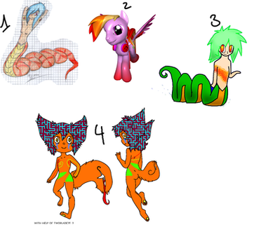 Offer money, points or art. I don't care what you do with them after it's bought, you can sell them as long as it's not more than what you offered and please link me for the design. When purchased or traded I will post a separate picture of your adoptable, in my scraps, and send you a link. there will be an hour to a day time if anyone would like to offer something elts.please do not steal or claim as your own if you did not purchase it.