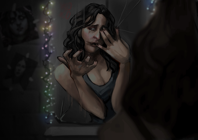 I feel the same way about mirrors, friend... Wonderful artwork, it shows how us mirror-haters feel exactly! (In my opinion, anyway )