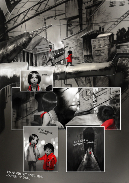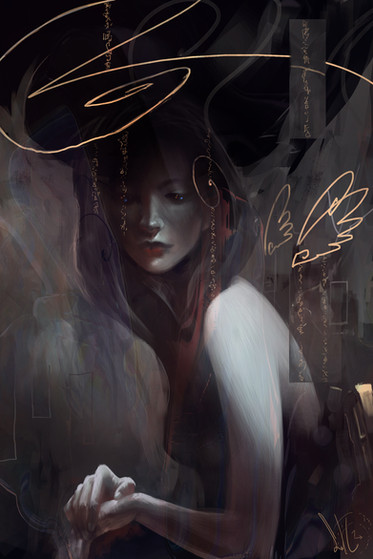 P.S. Your work is awesome! I love 'old style', black & white colors and her head (from behind - what's this btw? Is this piece of the monster?). And I love how she's sad but calm - maybe she's accepting the death? Really interesting...