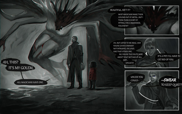 That's great! The stories are never fleshed out in my mind and I generally go for ambiguous scenes when I paint. I like it when people interpret the images differently