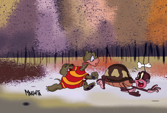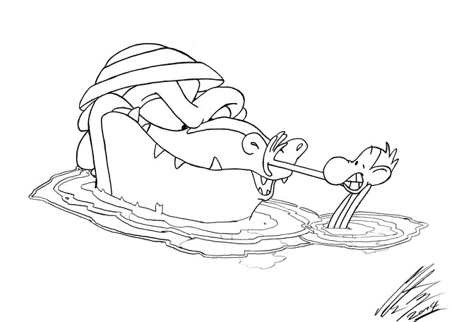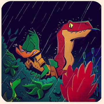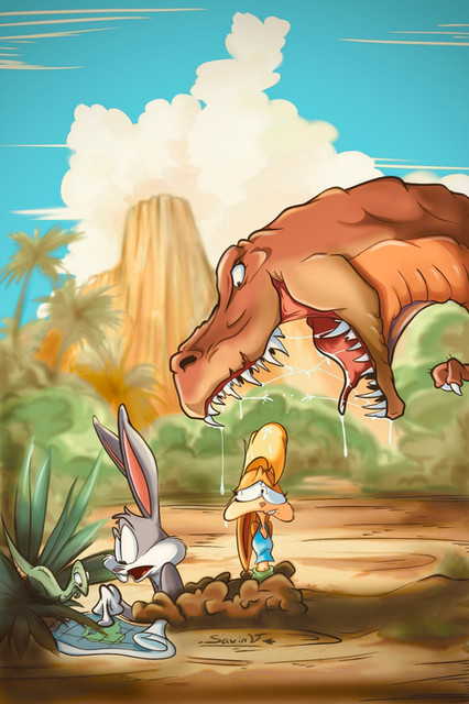 Nice work, the way the Dinosaur's neck extends out the panel gives this a real comic book vibe.