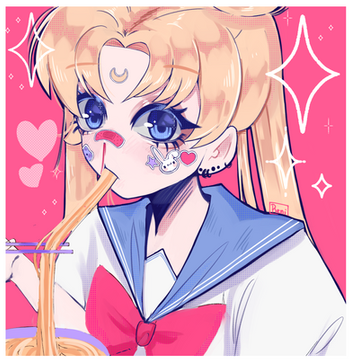 A famous moment with Usagi in my style as a sticker.Hey... Sailor Moon fans! Please tell me what kind of food is Usagi eating here? How it's called?