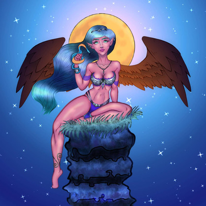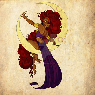 Another Ishtar-Inanna design. This time I dyed her hair red.And yes, I used the reference for her pose, but unfortunately, I did the initial sketch a year ago, and I don't remember the author of this reference. I'm really sorry.