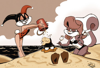 The spring break theme here is wonderful, with Buster and Babs deciding the fun wouldn't be complete without a little prank. The deviously satisfied looks they exchange as Plucky sees the ''shark's fin'' approaching-simply perfect!