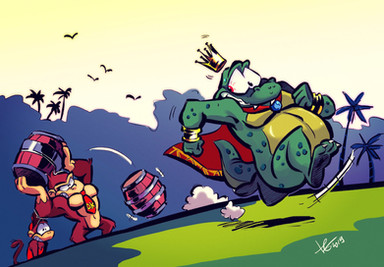 loving these donkey kong pictures! lol, I love your design of Diddy to! I really love how the tip of his cap flaps up with his head tilts back. Not to mention another wonderful pose from Dixie *faves*