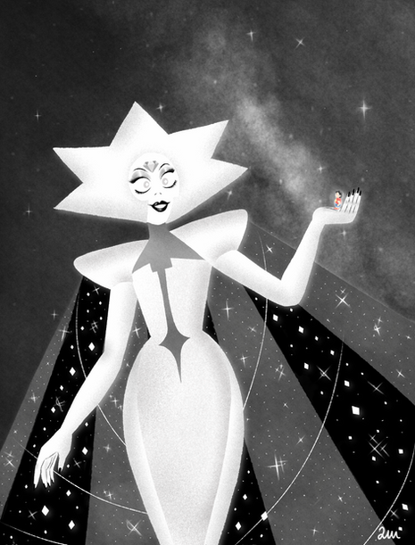 She guides you into the dark, or better known as the void.Her gem colored dark.