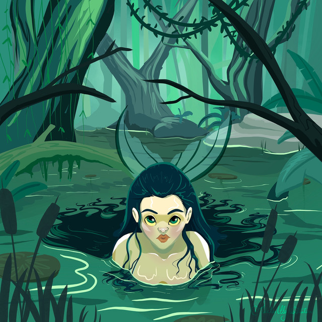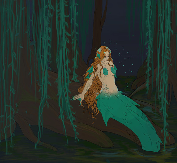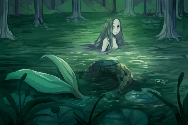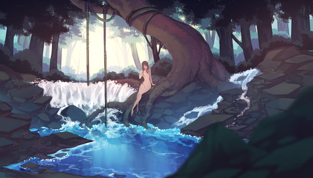 Love the piece, especially how you've blended highly detailed sections, like the nymph, and the flower in the foreground, with more stylized monochromatic sections, such as the forest in the background. Also really like the way you've done textures, such as the water, and tree bark. Nice work!