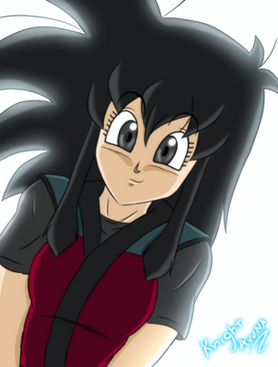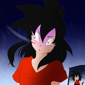 *looks the saiyan female back in the eyes* what? something on my face? O.O