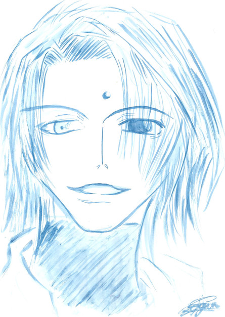 love the eyes, hair and the shading. a little blend of anime and traditional art. very cool. i haven't seen the anime, but the guy looks cool.