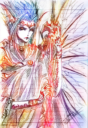 Draw using pencil, change the color using PS CS, and clean those ticks that drawn by the owner of the used paper -_-"