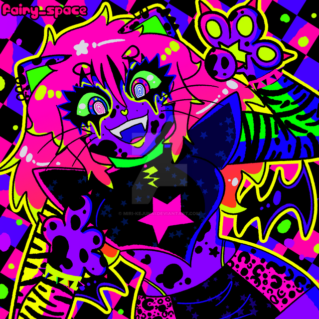 #neon #digitalart #cartoon #cat #characterdesign #catgirl #feline #anthro #anthrocat #catfurry #psychedelic #scene #ych #scenecore #furrycharacter #yourcharacterhere #furryych #ychexample