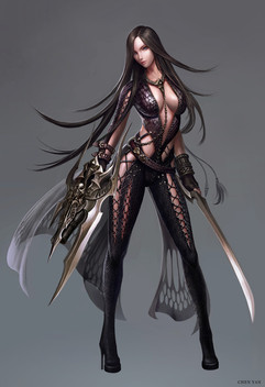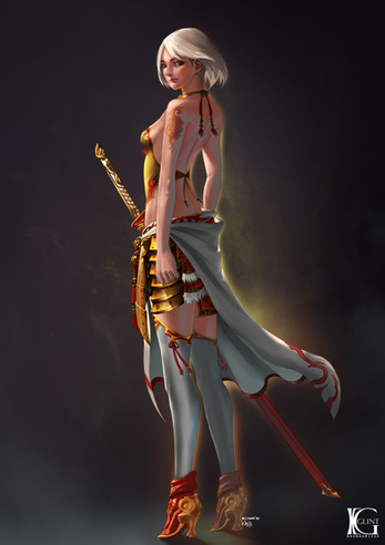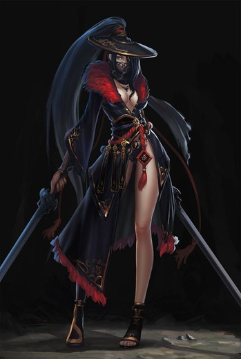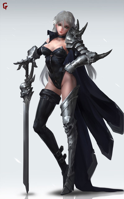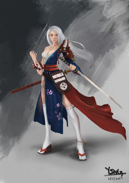 I Love the concept of this, the heavily armored non symmetrical side, the big katana, and all of her other "assets" this pic is cool, and I have really been enjoying your art since following you, so much of it really appeals to my taste in aesthetic!