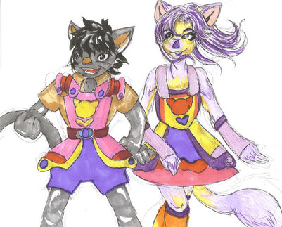 I love your (their?) designs together! The fur texture and expressions look great.