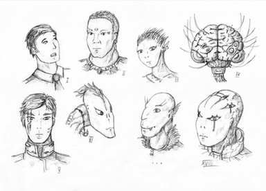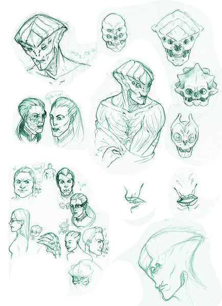 nice creature designs. the bottom left dude has a 'at lee" style to him. i'd like to see the top right one colored.
