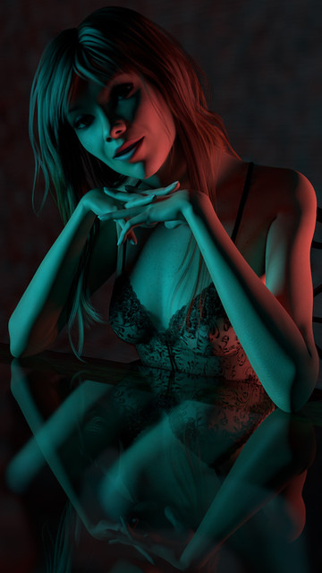 I wanted something simple and stress-free this week. No draping clothes or hair that required dForce. No complicated backgrounds. No interacting figures. Work is kicking my butt, so my 'for fun' art needed to be...fun. I love playing with reflections.Claire model ripped and rigged by Shinteo
