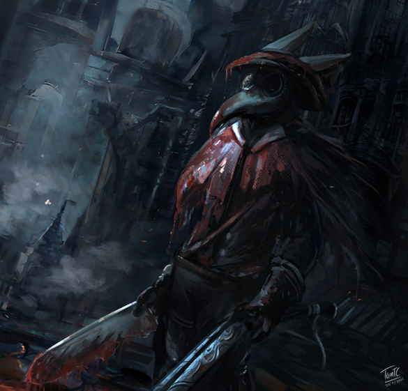 , those situations don't apply to your character, and less in the world of bloodborne, why not you edit this adding Β cape with its neck under capirote hood?
