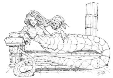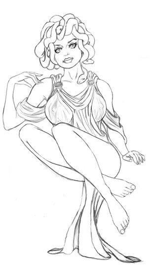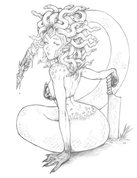 Uncolored. A friend of mine requested that I draw a tattoo for him. The idea was to draw Medusa with his mother's face. :/All I know is that if it were my mom, she'd slap me across the face! XD