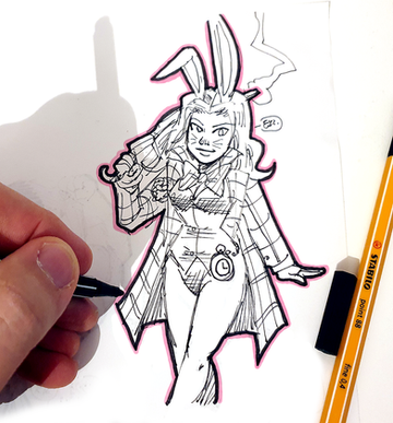 pencil, pen and ink, 2023.2White Rabbit from classic Spiderman from my twitter request box.