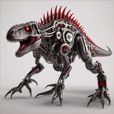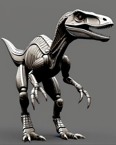 The was made using AI art thanks toI requested a robotic Raptor this one is good and scary.