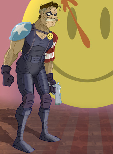 I'd like to pretend I'm a genius but that grin is the same one he has in the book right before he lights that scummy guy on fire for killing that little girl. Intentional, but not of my creation, Dave Gibbons is the man!