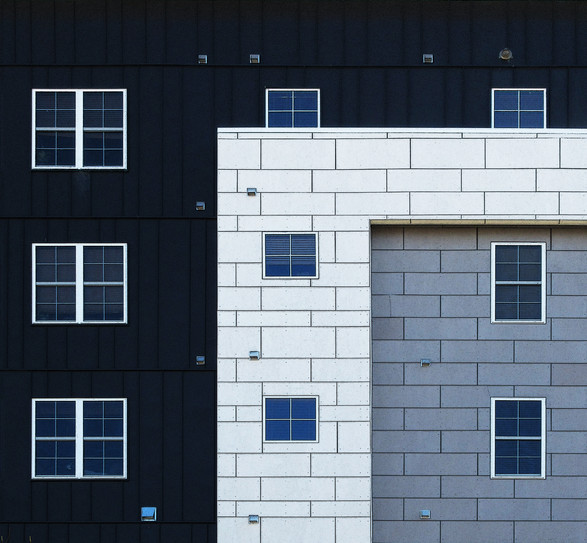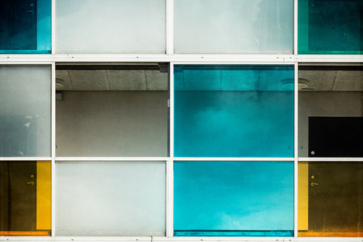 Love this photo showcasing the architectural design elements that is a study of shapes and color! Rectangles, squares and right angles abound in this photo. The yellow really pops visually against the blue and the teal tones of the piece.