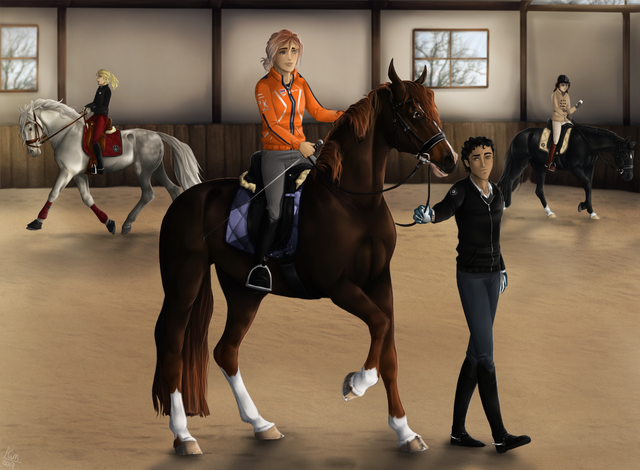 "Hey sweetpea, good morning. Did you sleep well?" I raise my head from my morning ration as I hear the voice of my two-legged and nicker happily. She pats my nose as she makes her way into the stall and knots the lead rope to my halter.