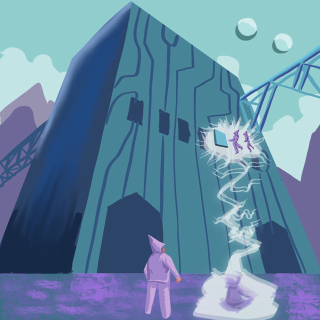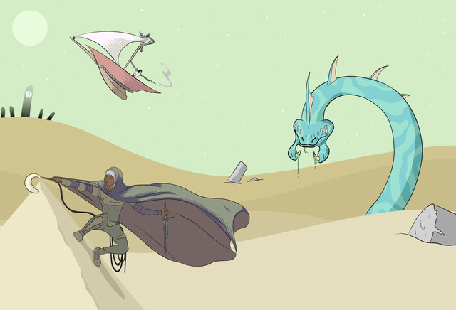 Explanation: While visiting Norwich, I walked through a park called the Library Woods. I decided to make a drawing inspired by that name, a forest which has grown over the site of a long lost giant library. My main focus was on the atmosphere. The chicken knight is from the doodle characters I posted as stories a couple of weeks ago.