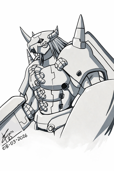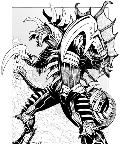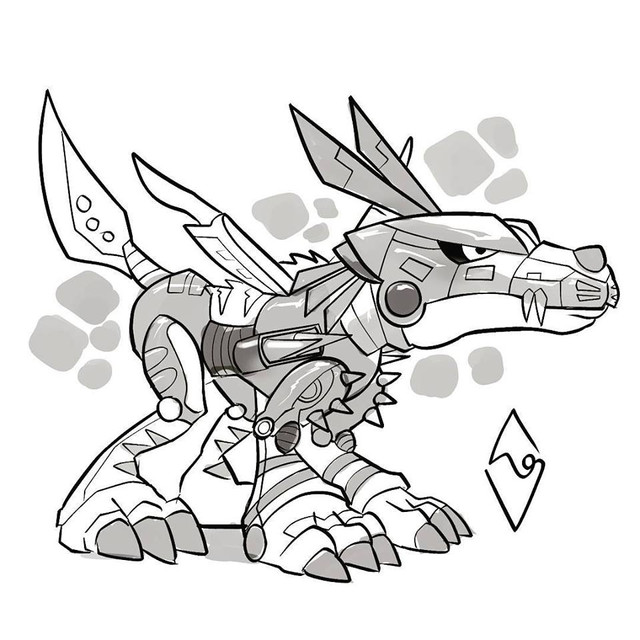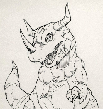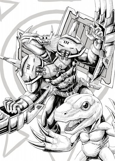 #anime #cyborg #digimon #dinosaur #greymon #ink #inkwash #manga #metalgreymon #agumon #blackandwhite #digitalmonsters #horror #pendrawing #traditionalart