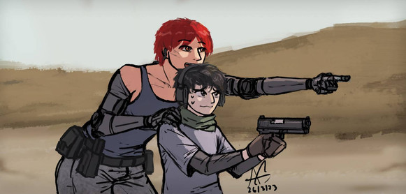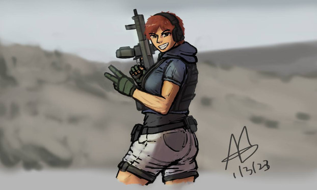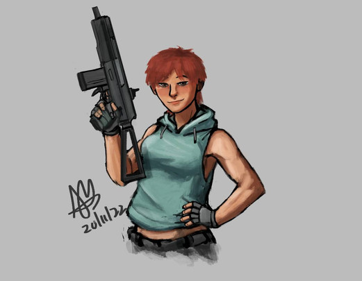 #character #competition #deagle #deserteagle #digitaldrawing #femalecharacter #femalemuscle #fnfal #gunslingergirl #redhairedgirl #shooting #tanktop #muscularfemale
