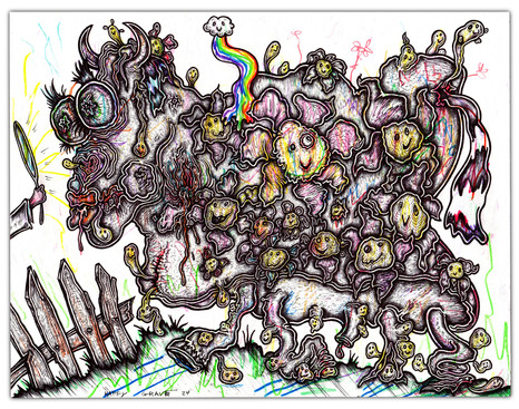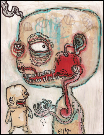 Media: Acrylic paint, ink, pencil on card-stock paper.