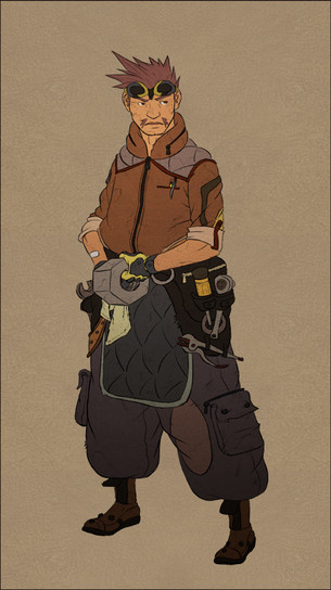 interesting character designsort of a steampunk look. the detail on the leatherwork is interesting.