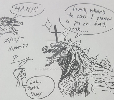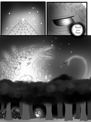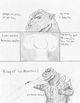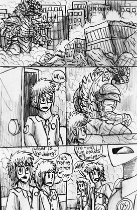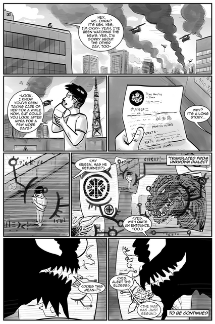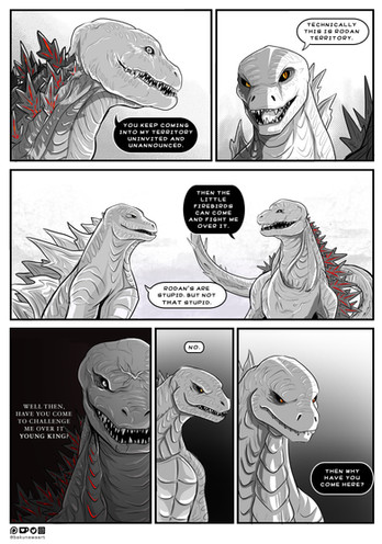 Here we see a bit more of the lore behind this story. Shin is seen a dangerous nuisance towards society, especially in the city that their living in with Goji and Zilla. This was the reason why Shin tried to use the crown to fake his identity so that people would like them.Also, this comic looks a sh1t to me QwQ Its sorta like the digital equivalent of my lazy comic style. I still need to work on it.