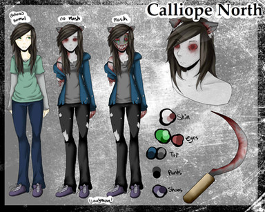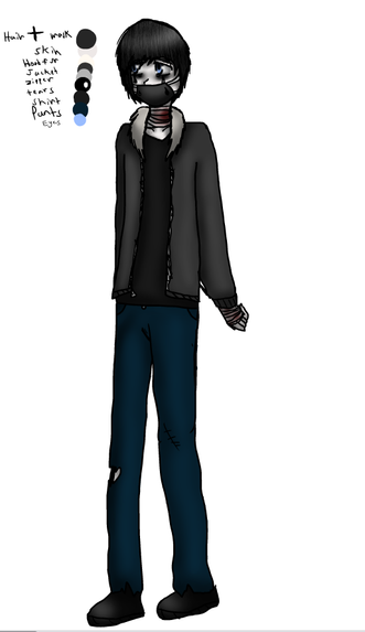 basic bio: Eric was a city kid living in an apartment with his single mom. he had many friends who he hung out with in the park. his friends started to disappear and were reported missing on the news. one night while sleeping, he was awoken by a scream. he went into his mothers room to see fidget Bridget devouring her. out of fear he ran into his closet and hid. she found him but he tried to fight back, along the way spatting awful things to her. she ended up eating one of his arms, Bridget brought him back to her lab where she attached his own mothers arm to his eaten off one. she also replaced his left eye with his mothers and sewn his mouth shut so he couldn't say things back. once in a while when he says something bad to her she does various experiments removing and attaching parts of skin. He now mostly keeps to himself out of dread and gets extremely frightened when someone wants to be his friend. he serves fidget Bridget as her personal "assistant/henchman" and will do anything she says out of fear.