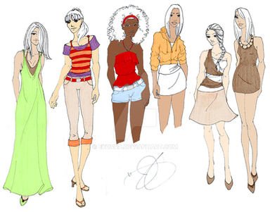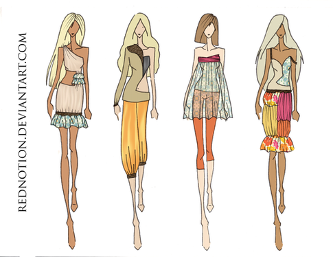 Here's a set of spring fashions. They are drawn on my new fashion template available for download here:[link]