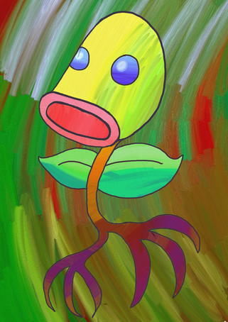Bellsprout (Pokemon) is painting with my phone, Galaxy Note 4 and with ArtRage for Android48/151 work in progress