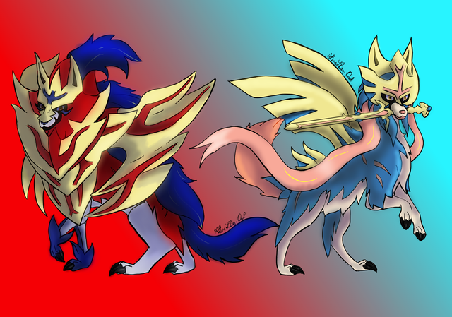 painting with ArtRage5, assembly with PhotoshopLycanroc + Honedge = Zacian