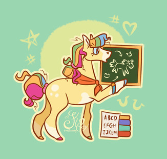 Born of pair of ever busy parents, the local bakers Butterscotch and Sweet Stuff, baby Minty, healthy and chubby lively filly, would often feel hardships of being on her own, when hard-working parents couldn't devote much time to the child; from young age Minty was leaning to be independent and strong-willed, as she intended to maintain status of "Sweets&Treats" main chief once she's old enough. For now she helps her folks in the kitchen, gaining wisdom and knowledge from them and learning everything about cooking; sweet tooth by nature, Minty would most commonly ask her mother to teach her to bake and make sweets of all kinds that she would see in magazines and cookery books. She was energetic and extremely active even in the kitchen, and parents, tired of her clumsiness and nuisance, sent her to the sports club so to put her excessive energy into something more useful; frisky Minty came to love acrobatics and gymnastics most of all and would often practice various tricks at home, bringing parents even more trouble. Reaching teenhood young mare had to go through that awkward state, when she became extremely anxious and overly-emotional; she often worried about public opinions and impressions she made on others, but would open up her naturally curious and friendly side near trusted friends. At that time her litle sister Scootaloo was born, and Minty dedicated all her time caring for a mischievous sibling, - girls would play and fight, ride bikes together and, of course, steal treats from the kitchen when mom wasn't looking. Once an adult mare, ambitious Minty became the new main chief in family cafe and made herself famous as one of the most talented young cooks in Ponyville, - along with rival Sweetberry, Triple Treat and Cotton Candy.