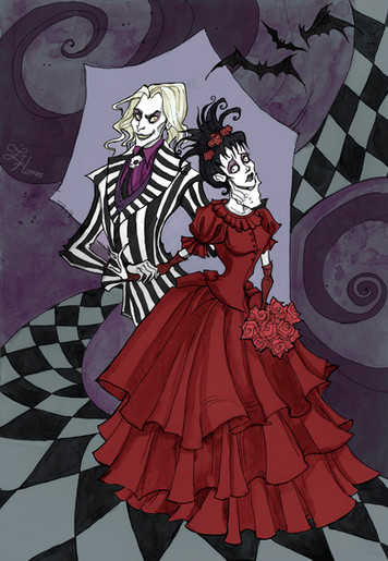 #beetlejuice #bride #couple #dress #fanart #love #lydiadeetz #red #sketch #timburton #wedding