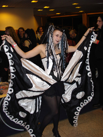 Half arm movable wings (the glue for the fabric turned out to fail 2 days before the event...so I spent 48 hours with no sleep trying to save what I could. I was only able to do some rough half wings :c)